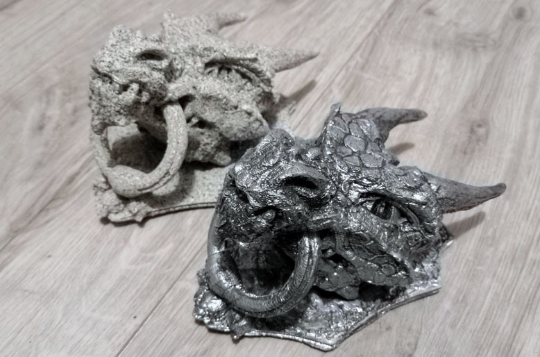 Têtes de dragon imprimées en 3D et peinte.