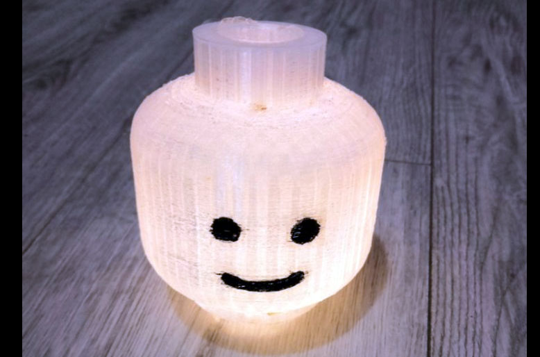 Tête de lego lumineuse imprimé en 3D.