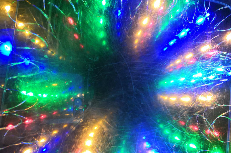 Eclairage lumière infini avec une guirlande de leds et un film sans teint sur du plexiglass